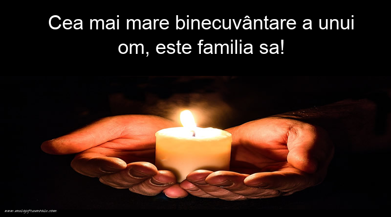 O singură imagine poate să transmită puterea și încrederea pe care o aduce credința! Sperăm ca această imagine cu mesajul frumos Cea mai mare binecuvântare a unui om, este familia sa! vă va aduce lumină și inspirație în călătoria dumneavoastră spirituală și personală.
