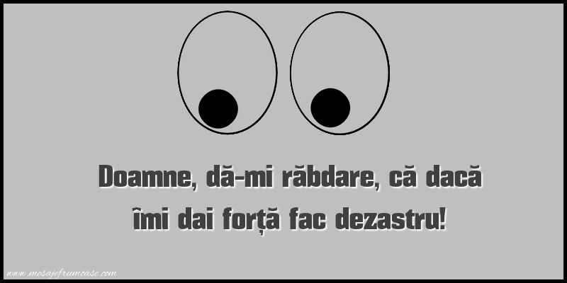 Umorul și amuzamentul se împletesc cu înțelepciunea și învățăturile vieții! Sperăm ca această imagine cu mesajul frumos Doamne, dă-mi răbdare, că dacă îmi dai forță fac dezastru! vă va aduce momente de amuzament și distracție în călătoria dumneavoastră prin viață.
