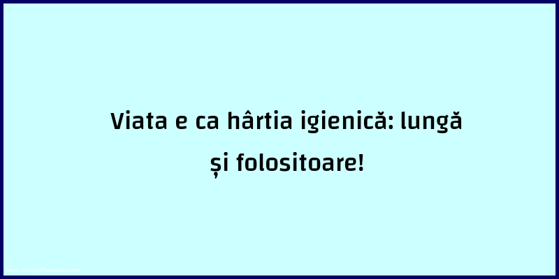 Umorul și amuzamentul se împletesc cu înțelepciunea și învățăturile vieții! Sperăm ca această imagine cu mesajul frumos Viata e ca hârtia igienică: lungă și folositoare! vă va aduce momente de amuzament și distracție în călătoria dumneavoastră prin viață.