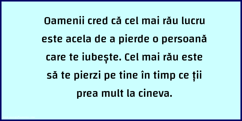 O singură imagine poate să transmită puterea și încurajarea de care avem nevoie în momentele dificile! Sperăm ca această imagine cu mesajul frumos Oamenii cred că cel mai rău lucru este acela de a pierde o persoană care te iubește. Cel mai rău este să te pierzi pe tine în timp ce ții prea mult la cineva. să vă aducă lumina și inspirația de care aveți nevoie în călătoria dumneavoastră prin viață.