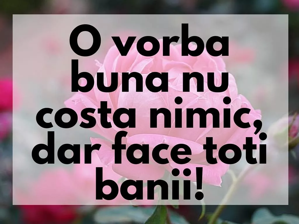 O singură imagine poate să transmită puterea și încurajarea de care avem nevoie în momentele dificile! Sperăm ca această imagine cu mesajul frumos O vorbă bună nu costă nimic dar... face toți banii! să vă aducă lumina și inspirația de care aveți nevoie în călătoria dumneavoastră prin viață.