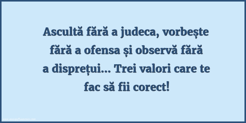 Ascultă fără a judeca, vorbește fără a ofensa și observă fără a disprețui... Trei valori care te fac să fii corect!