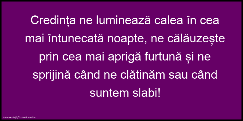 Mesaje frumoase despre credinta - Credința ne luminează calea în cea mai întunecată noapte...