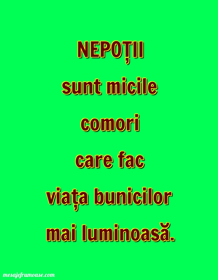 O singură imagine poate să transmită căldura și importanța familiei! Sperăm ca această imagine cu mesajul frumos NEPOŢII sunt micile comori care fac viața bunicilor mai luminoasă. vă va aduce lumină și inspirație în călătoria dumneavoastră prin lumea minunată a familiei.