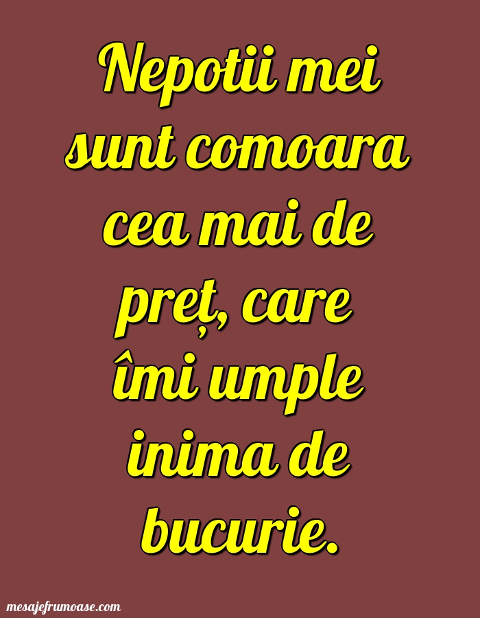 Mesaje frumoase despre familie - Nepotii mei sunt comoara cea mai de preț, care îmi umple inima de bucurie.