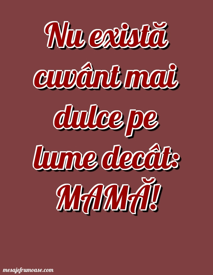 O singură imagine poate să transmită căldura și importanța familiei! Sperăm ca această imagine cu mesajul frumos Nu există cuvânt mai dulce pe lume decât: MAMĂ! vă va aduce lumină și inspirație în călătoria dumneavoastră prin lumea minunată a familiei.
