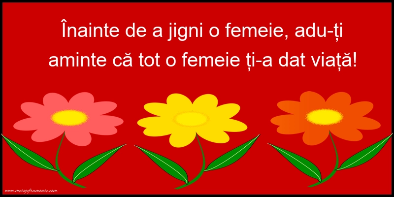 Înainte de a jigni o femeie, adu-ți aminte că tot o femeie ți-a dat viață!