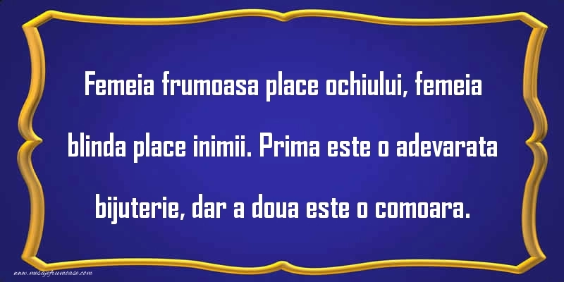 Mesaje frumoase despre femei - Femeia frumoasa place ochiului, femeia blinda place inimii