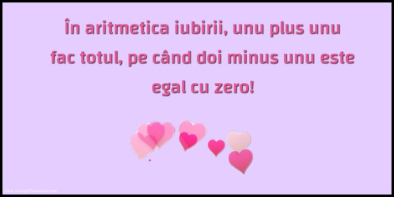 Mesaje frumoase despre iubire - În aritmetica iubirii, unu plus unu fac totul