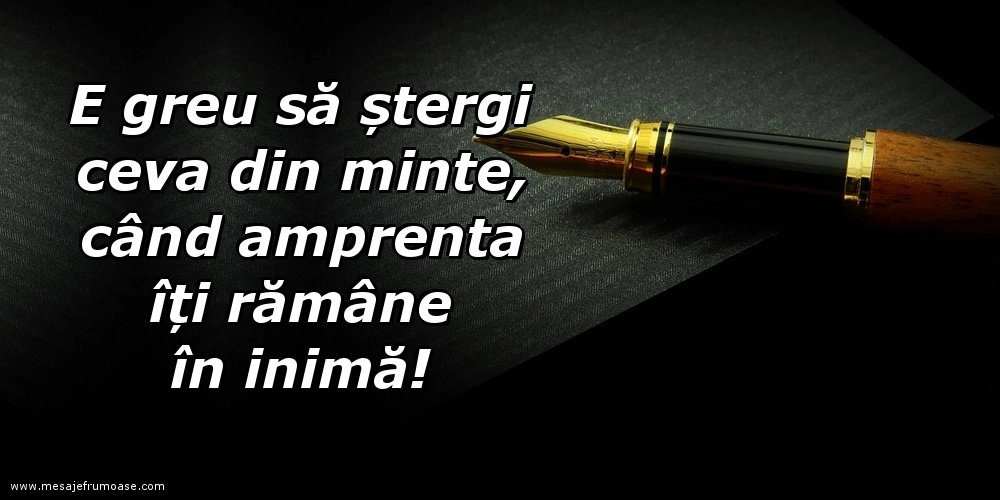 O singură imagine poate să exprime întreaga profunzime a iubirii! Sperăm ca această imagine cu mesajul frumos E greu să ștergi ceva din minte, când amprenta îți rămâne în inimă! să vă aducă lumină și inspirație în călătoria dumneavoastră prin lumea iubirii.