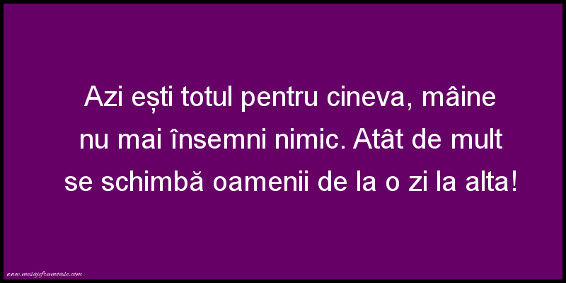 Mesaje frumoase despre om - Azi ești totul pentru cineva, mâine nu mai însemni nimic