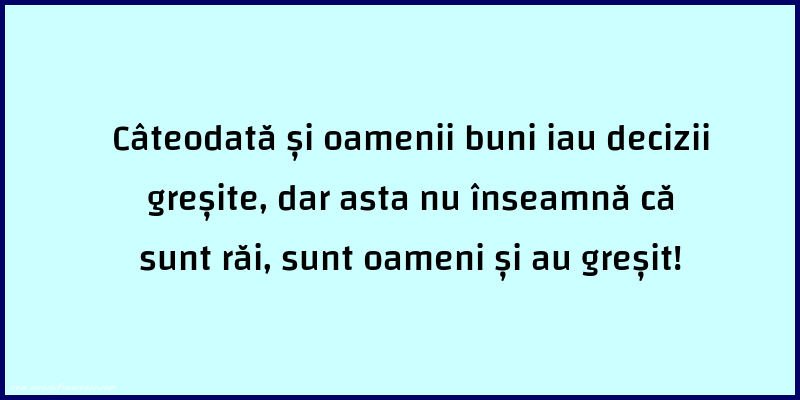 O singură imagine poate să ilustreze complexitatea și frumusețea umanității! Sperăm ca această imagine cu mesajul frumos Câteodată și oamenii buni iau decizii greșite, dar asta nu înseamnă că sunt răi, sunt oameni și au greșit! vă va aduce lumină și inspirație în călătoria dumneavoastră prin lumea umanității.