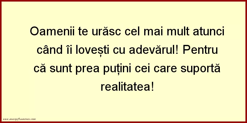 Oamenii te urăsc cel mai mult atunci când îi lovești cu adevărul! Pentru că sunt prea puțini cei care suportă realitatea!