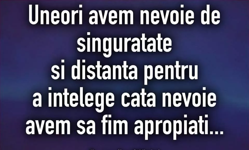 Uneori avem nevoie de singurătate și distanță pentru a înțelege câtă nevoie avem să fim apropiați...
