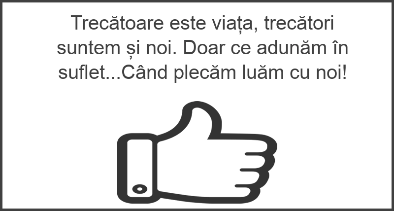 Trecătoare este viața, trecători suntem și noi. Doar ce adunăm în suflet...Când plecăm luăm cu noi!