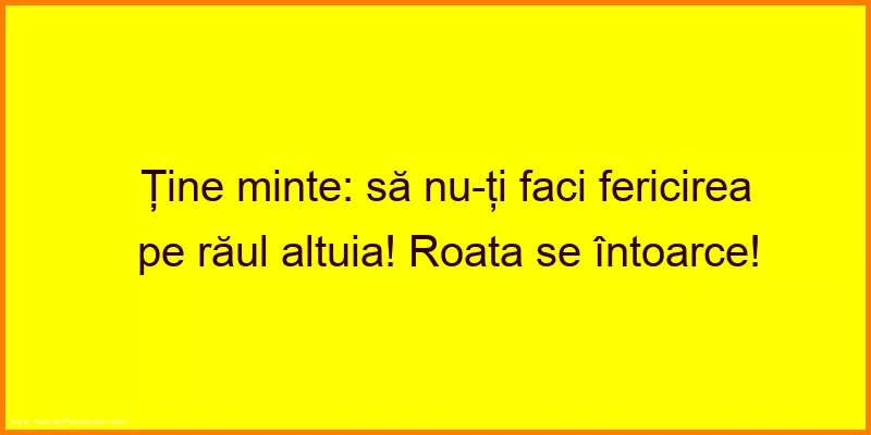 Mesaje frumoase fericire - Ține minte: să nu-ți faci fericirea pe răul altuia! Roata se întoarce!