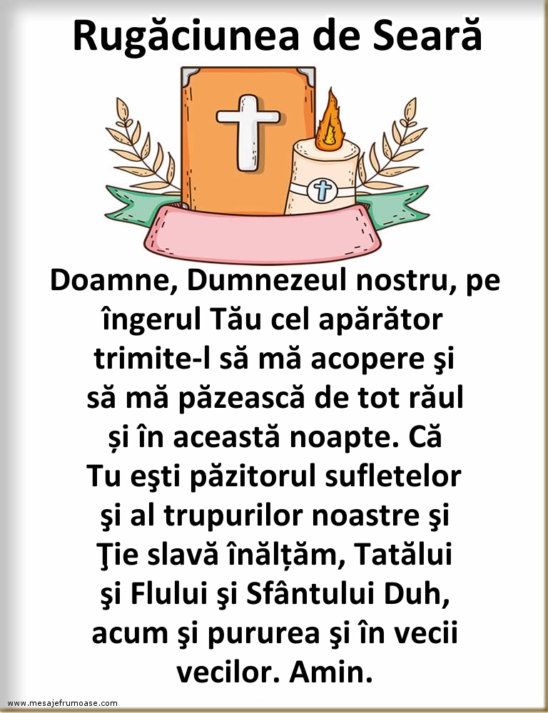 Fie ca această rugăciune de luni cu cu textul frumos Doamne, Dumnezeul nostru, pe îngerul Tău cel apărător trimite-l să mă acopere şi să mă păzească de tot răul și în această noapte. Că Tu eşti păzitorul sufletelor şi al trupurilor noastre şi Ţie slavă înălțăm, Tatălui şi Flului şi Sfântului Duh, acum şi pururea şi în vecii vecilor. Amin. să vă ofere confortul și ghidarea de care aveți nevoie pentru a aborda cu încredere toate provocările și binecuvântările săptămânii care începe.